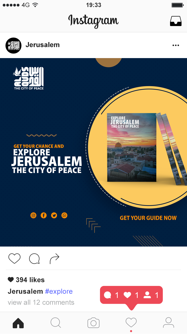 This campaign is a supportive campaign for tourism in Jerusalem (Al Quds) that will be by designing items that show the attraction places around Jerusalem (Al Quds), to let people get to know about Jerusalem (Al Quds) in general, why it's a holy city and why it's important.
